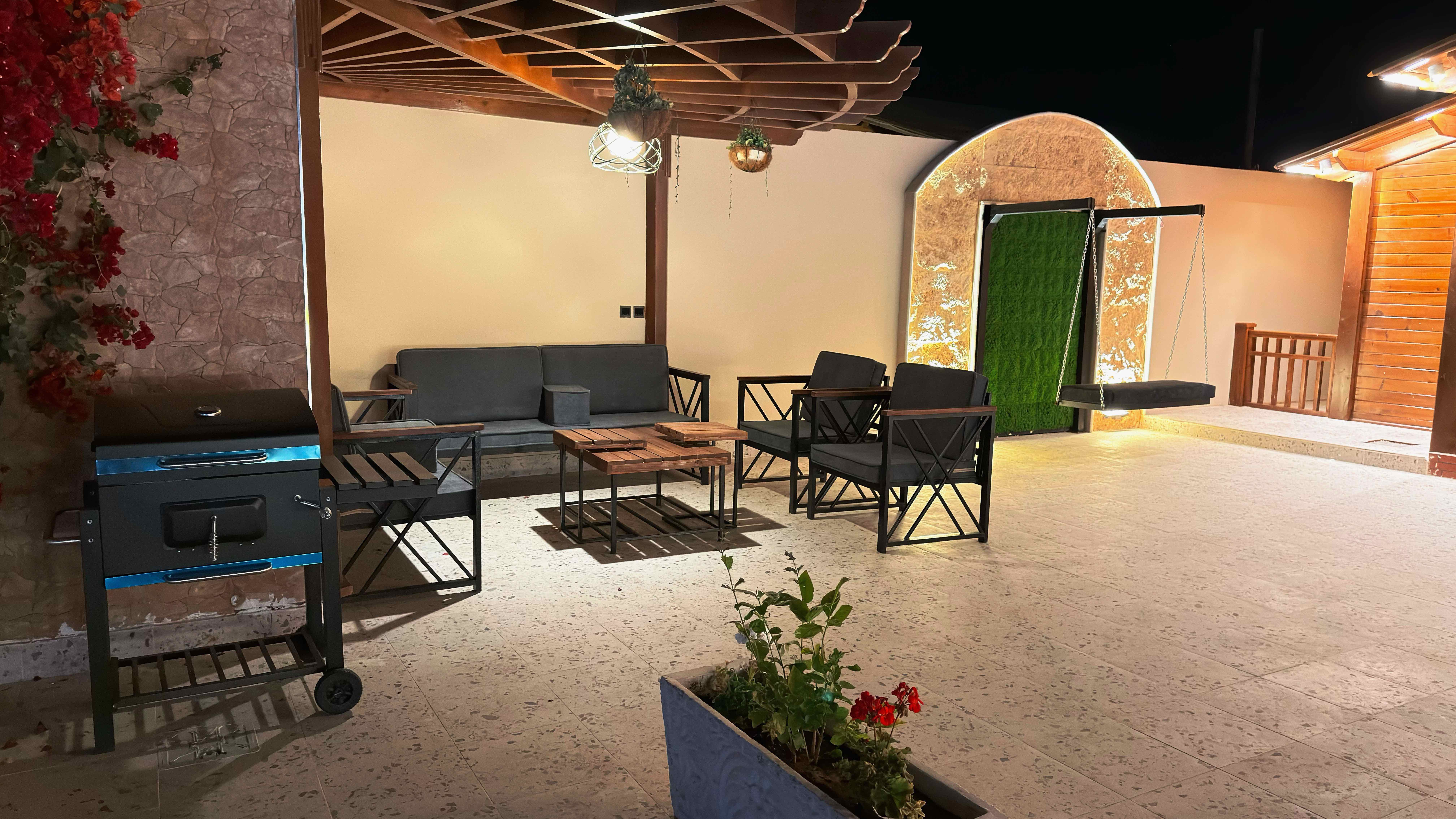 • جلسة بلكونة مطله على المسبح تتسع ل 7 شخص